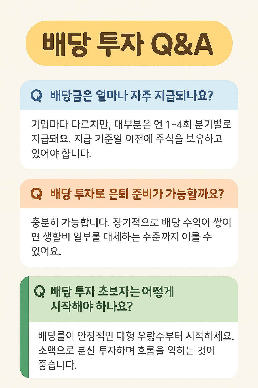 | 배당 투자란? | 기업이 수익의 일부를 주주에게 나눠주는 구조입니다. |